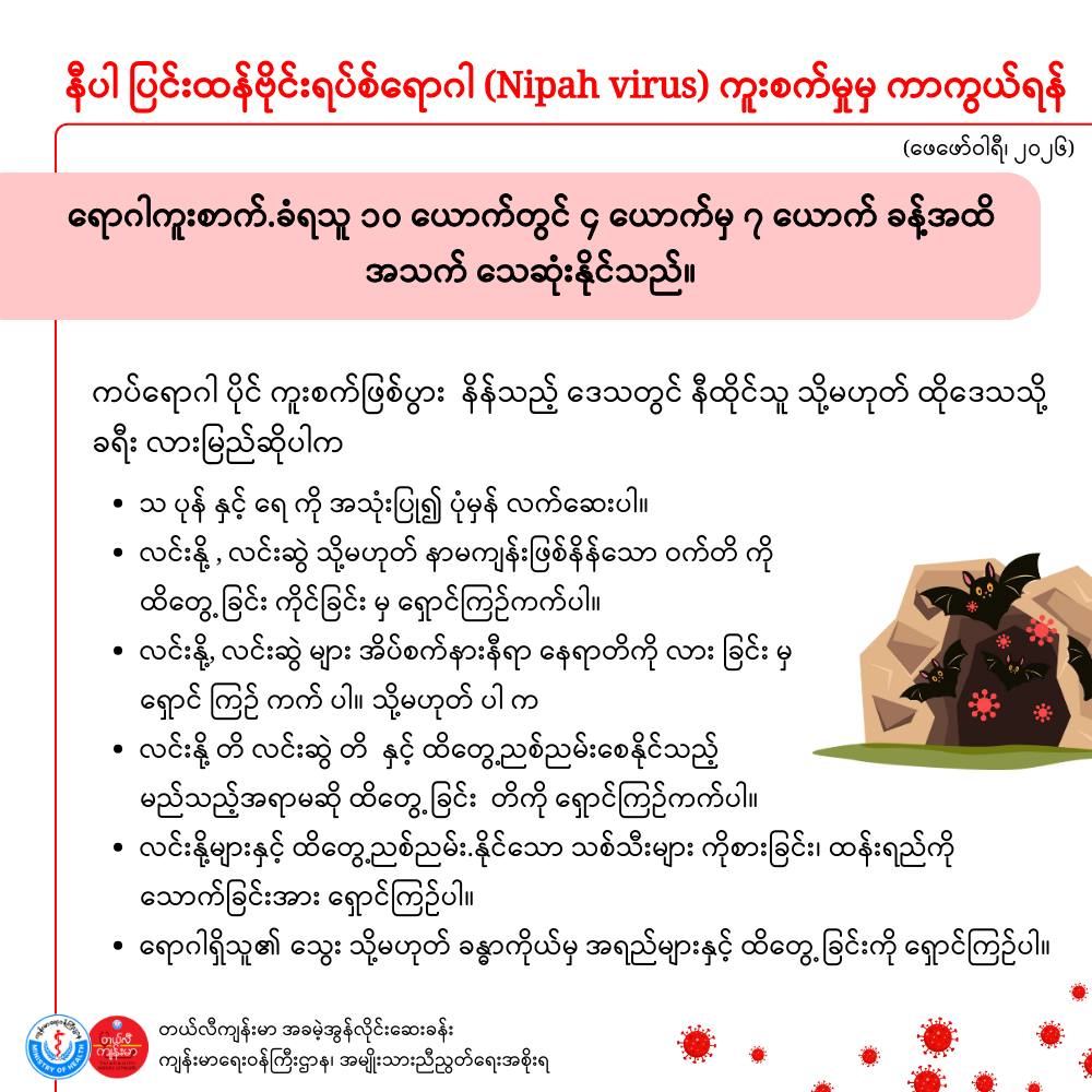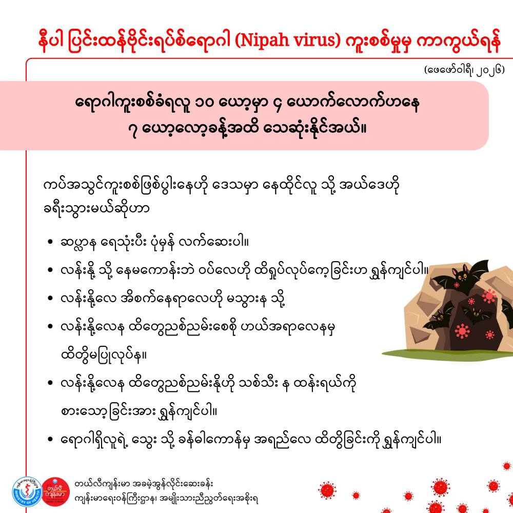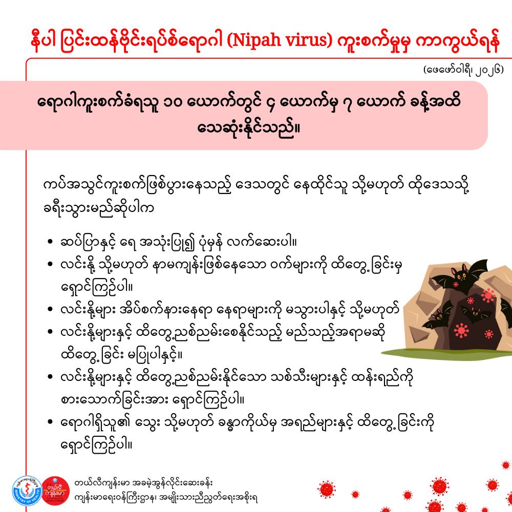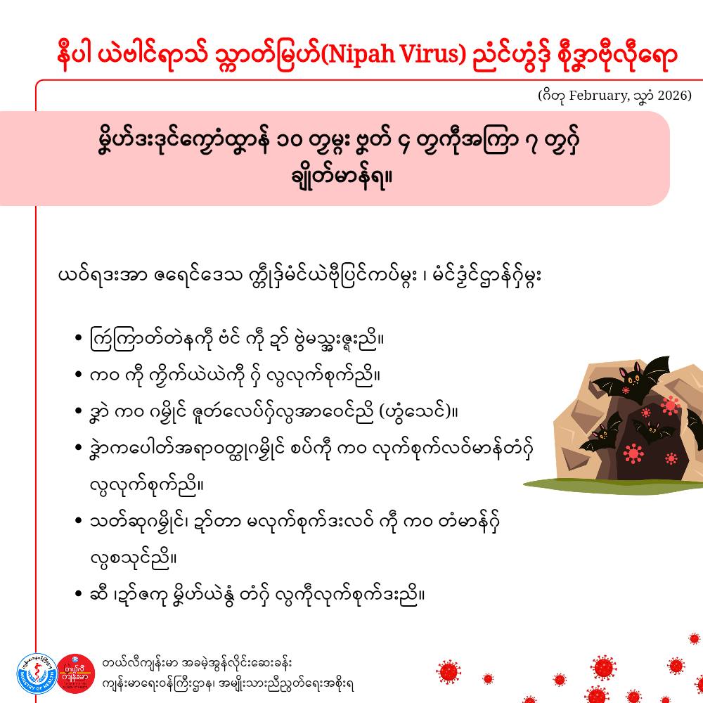 နီပါ ပြင်းထန်ဗိုင်းရပ်စ်ရောဂါ (Nipah virus) ကူးစက်မှုမှ ကာကွယ်ရန် (ဖေဖော်ဝါရီ၊ ၂၀၂၆)