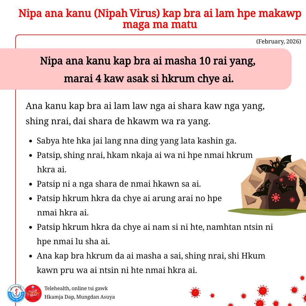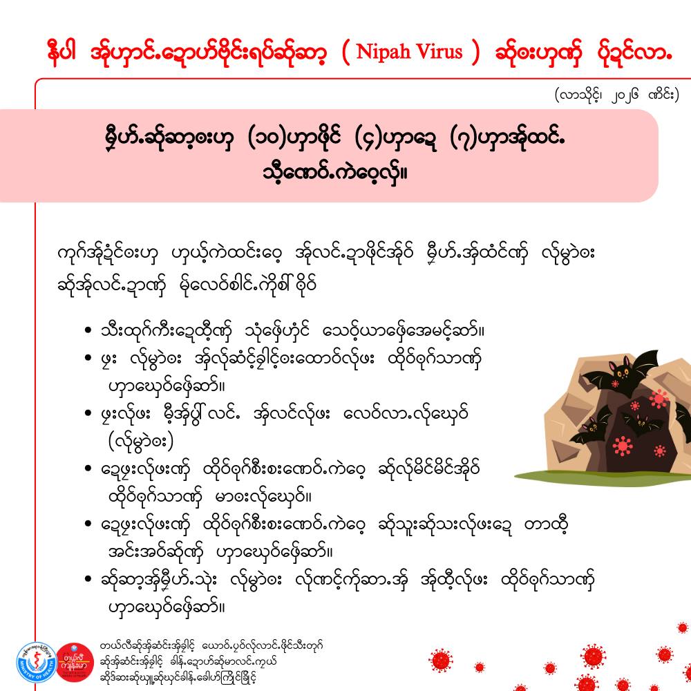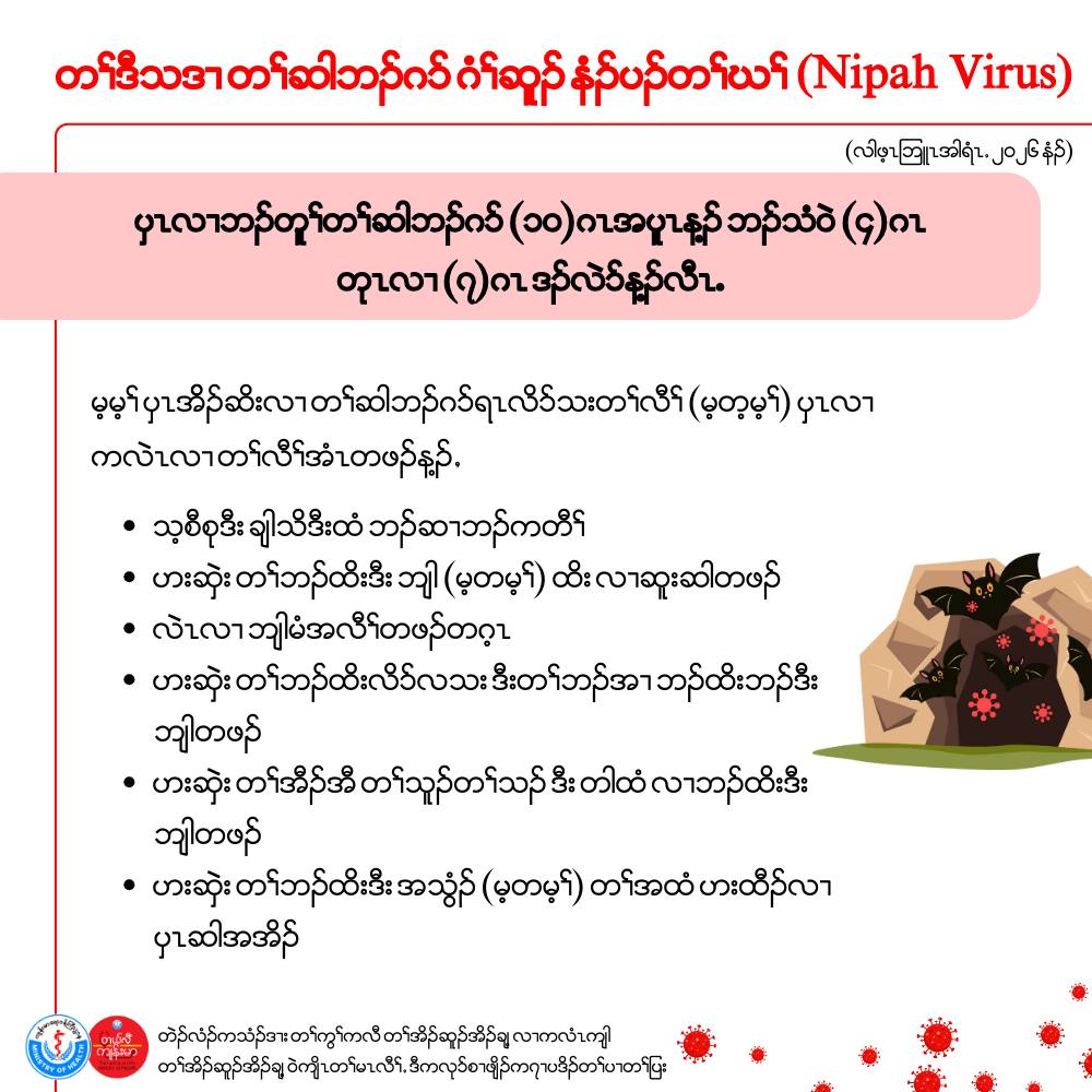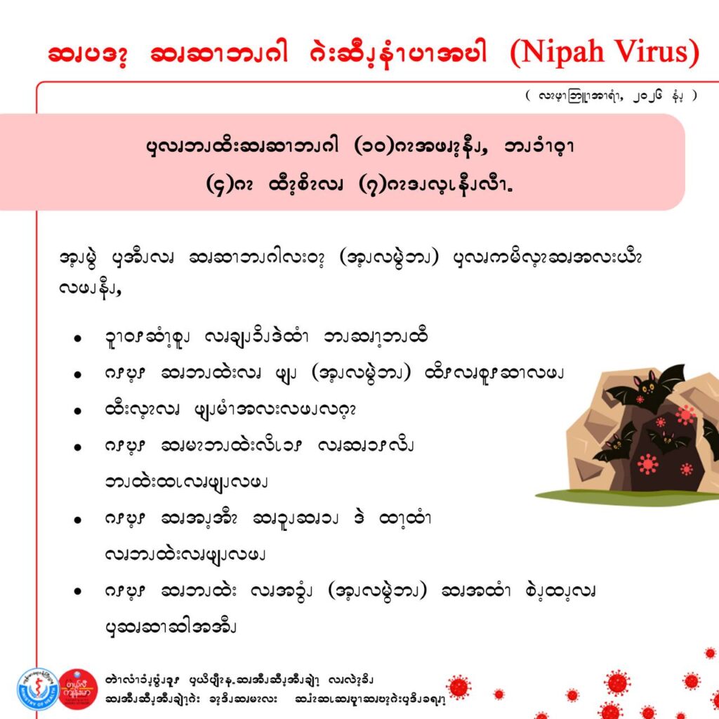 နီပါ ပြင်းထန်ဗိုင်းရပ်စ်ရောဂါ (Nipah virus) ကူးစက်မှုမှ ကာကွယ်ရန် (ဖေဖော်ဝါရီ၊ ၂၀၂၆)