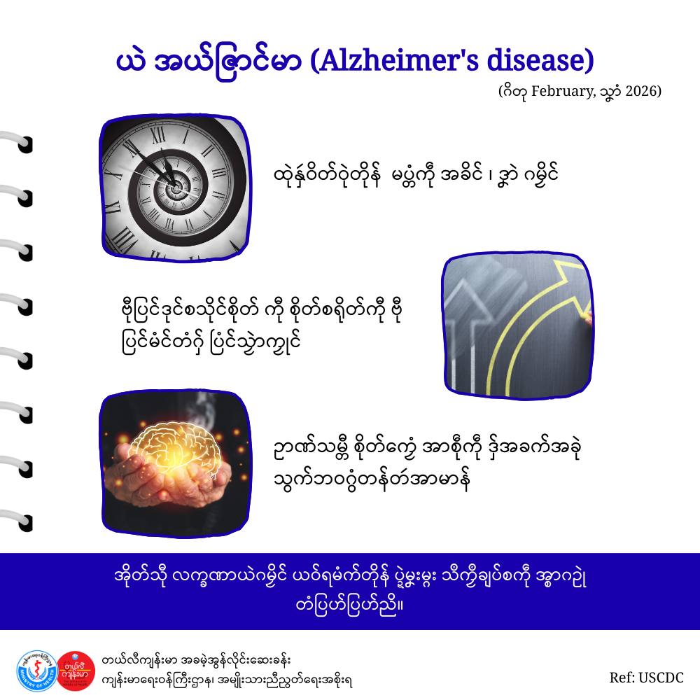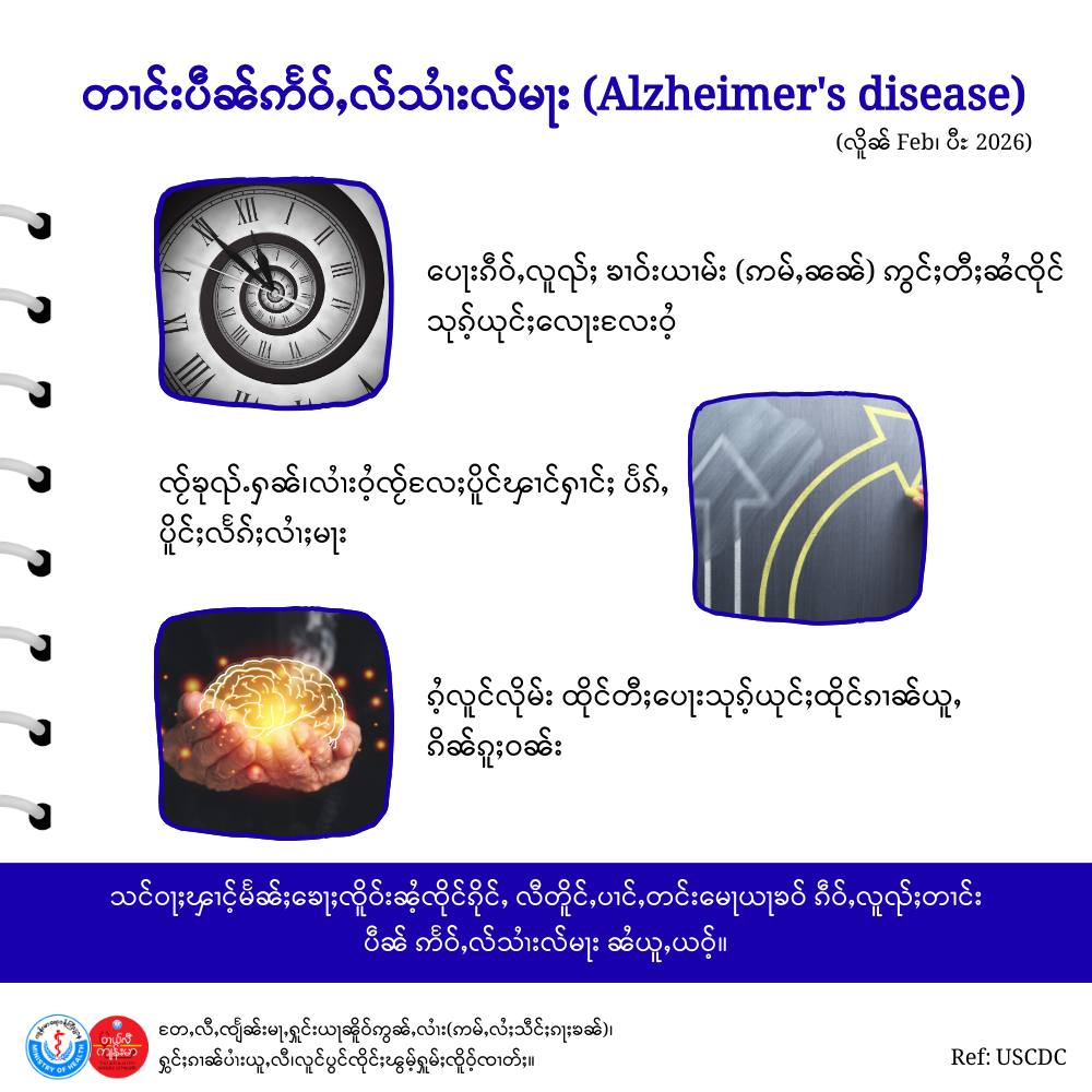 အယ်လ်ဇိုင်းမားရောဂါ (Alzheimer’s disease)(ဖေဖော်ဝါရီ၊ ၂၀၂၆)