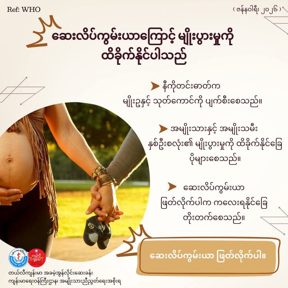 အထက်ပါစာသား ကျန်းမာရေးဗဟုသုတလေးတွေကို လူမျိုးပေါင်းစုံဘာသာစကား (၁၀) မျိုးနဲ့လည်း ပုံလေးတွေနဲ့တကွ ဖော်ပြပေးထားပါတယ်နော်။