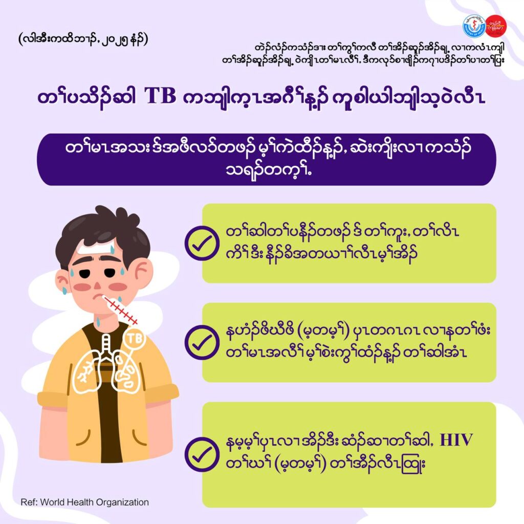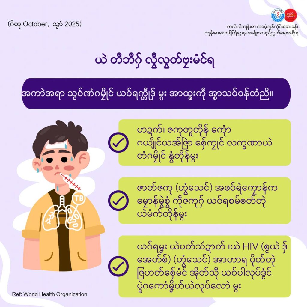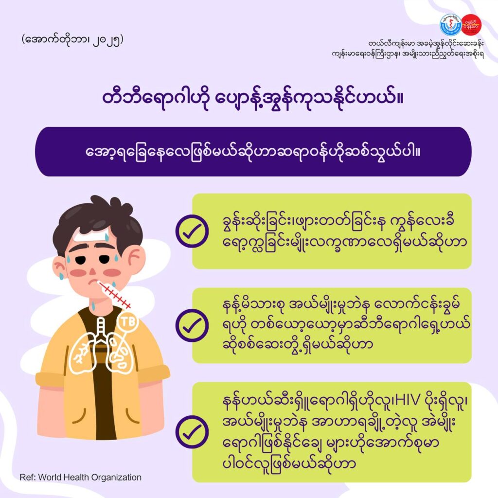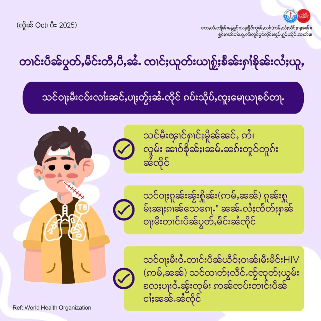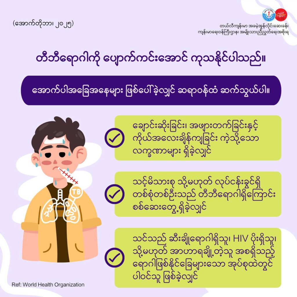 ▪️ သင့်မိသားစု သိုမဟုတ် လုပ်ငန်းခွင်ရှိ တစ်စုံတစ်ဦးသည် တီဘီရောဂါရှိကြောင်း စစ်ဆေးတွေ့ရှိခဲ့လျှင်