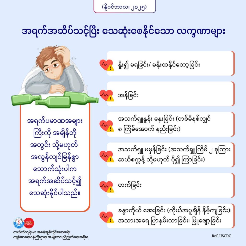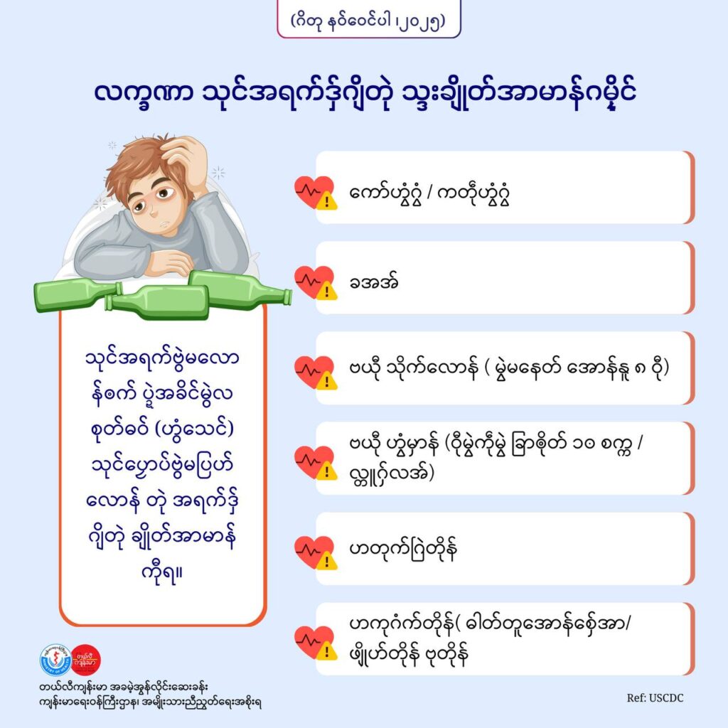 အရက်အဆိပ်သင့်ပြီး သေဆုံးစေနိုင်သော လက္ခဏာများ (နိုဝင်ဘာလ၊ ၂၀၂၅)